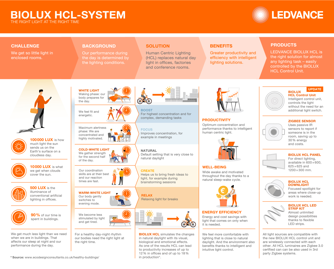 The biolux hcl system from ledvance automatically adapts artificial light to changes in daylight thanks to an intelligent, patent pending algorithm – allowing users to choose the right dynamics for them at any time.