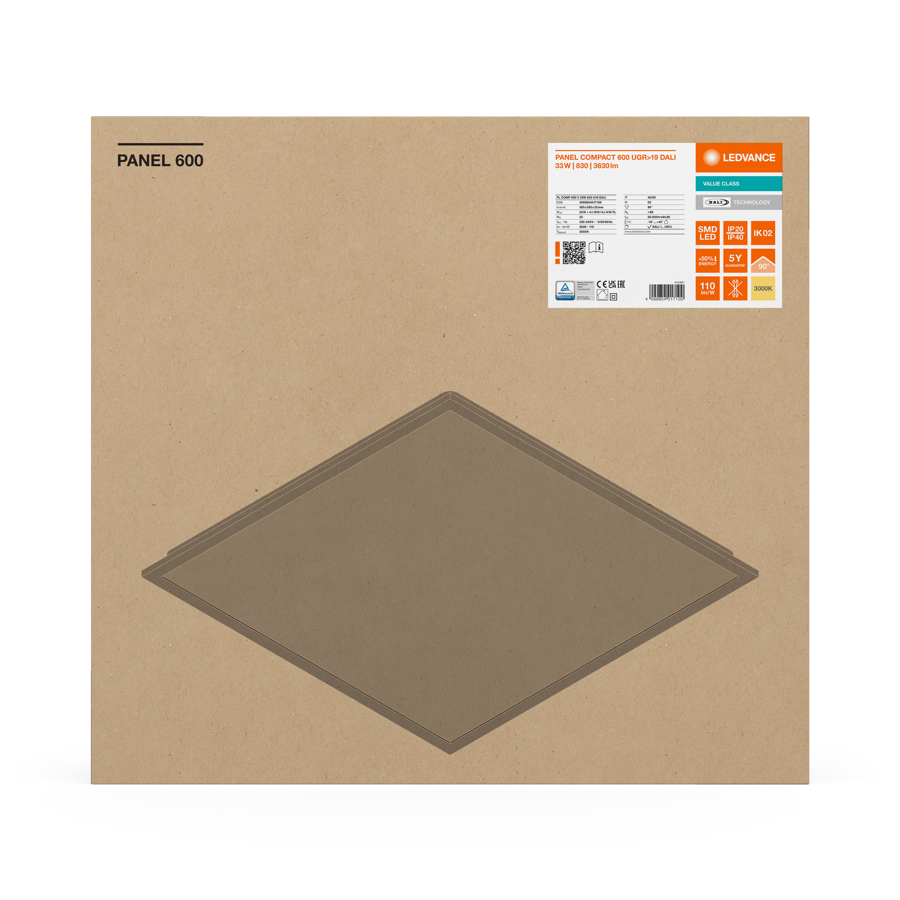 | Tipo di illuminazione di emergenza (EL) | Unità EL opzionale (batteria e controller) per il funzionamento decentralizzato disponibile separatamente, Driver certificato EL (funzionamento 0Hz/DC) per il funzionamento a batteria centrale incluso |