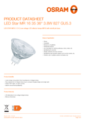 | Product opmerking | Alle technische parameters gelden voor de gehele lamp, Wegens het complexe productieproces van lichtdioden zijn de typische waarden die voor de technische LED parameters worden vermeld, zuiver statistische waarden die niet noodzakelijkerwijs overeenstemmen met de feitelijke technische parameters van een afzonderlijk product; afzonderlijke producten kunnen afwijken van de typische waarden |