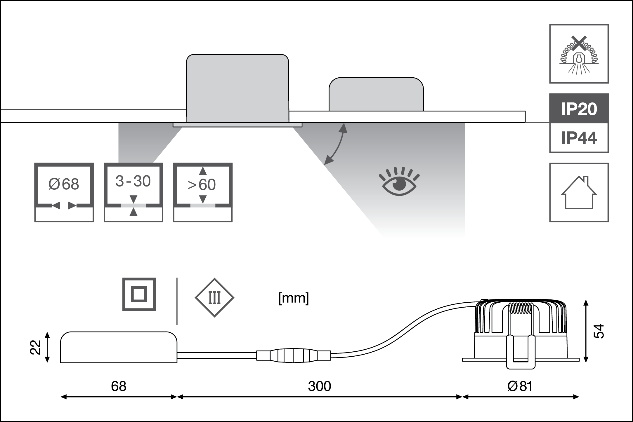 | Diameter inbouw opening | 68 mm |