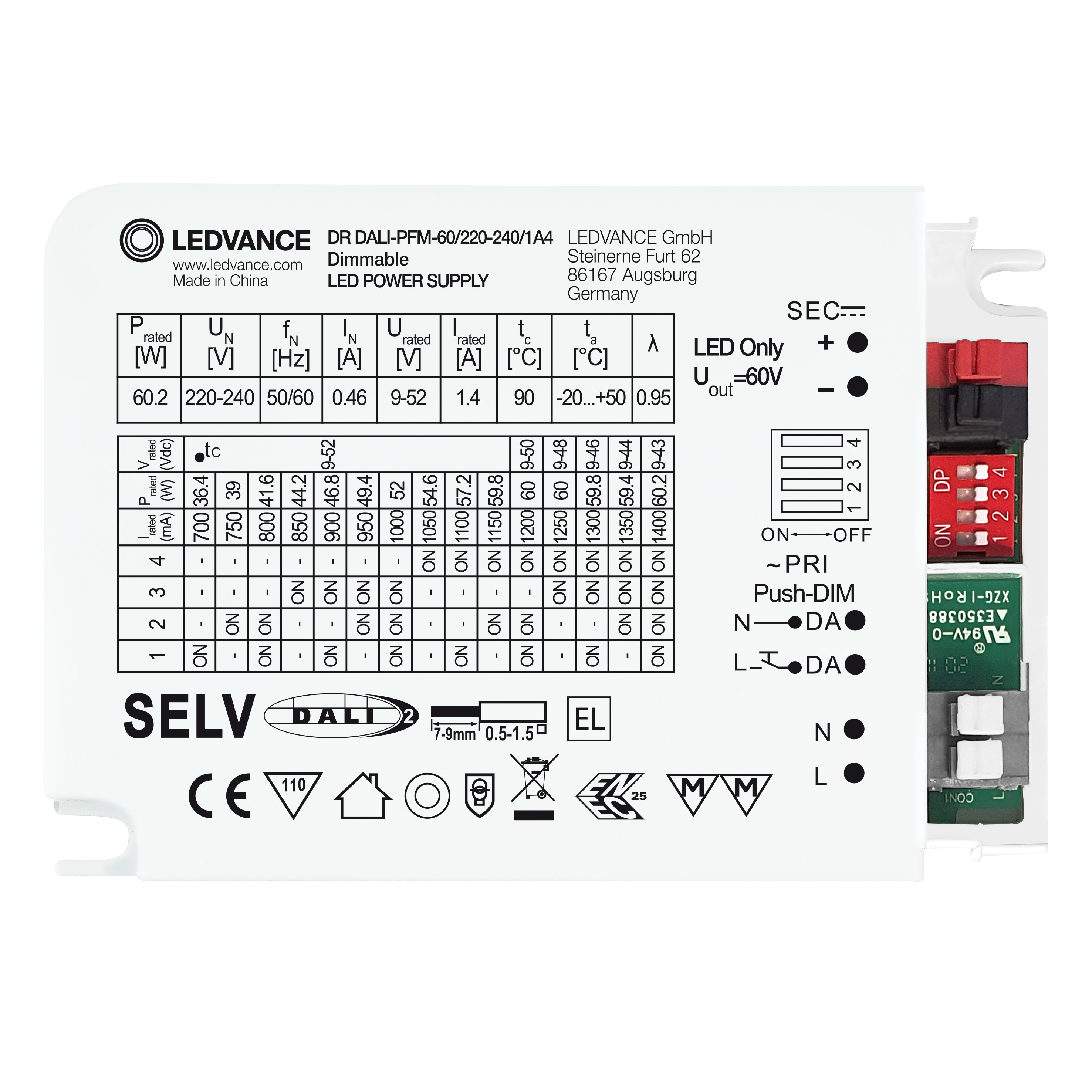 | Dimmer interface | DALI-2 |