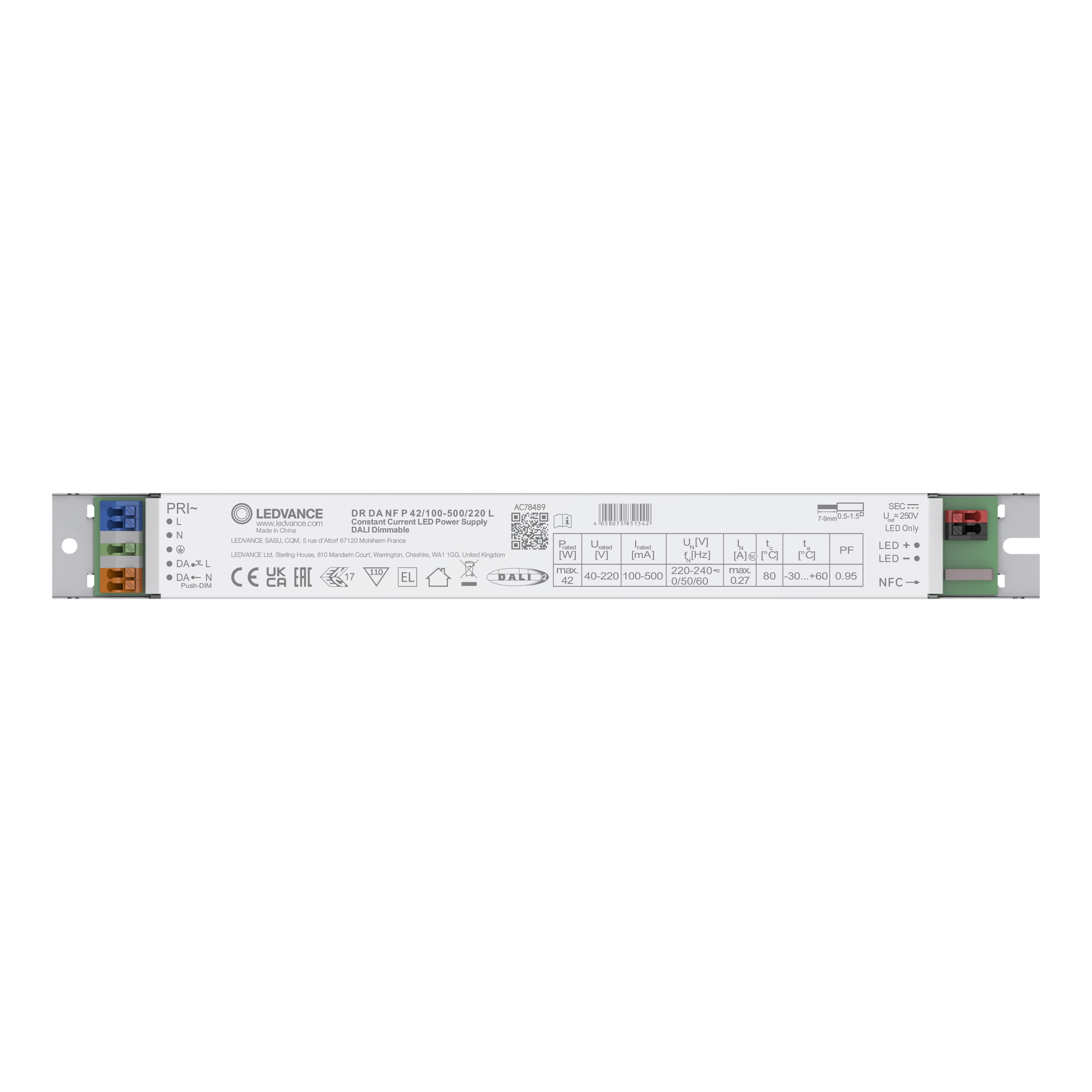 | Normen | Volgens EN 61347-1, Volgens EN 61347-2-13, Volgens EN 55015, Volgens EN 61547, Volgens EN 61000-3-2, Volgens EN 62384 |